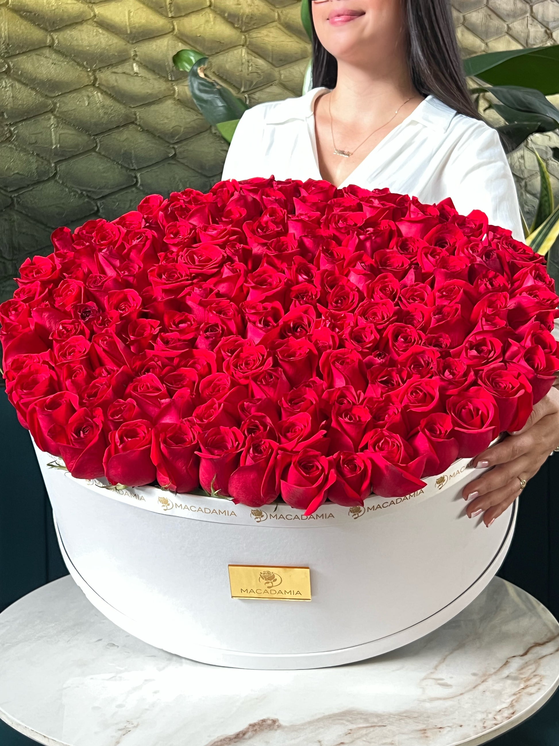 Diseño elegante y exclusivo hecho con 150 rosas naturales tipo exportación  , color de la rosa a tu libre elección, con su hermosa caja en cuerina, incluye tarjeta personalizada.